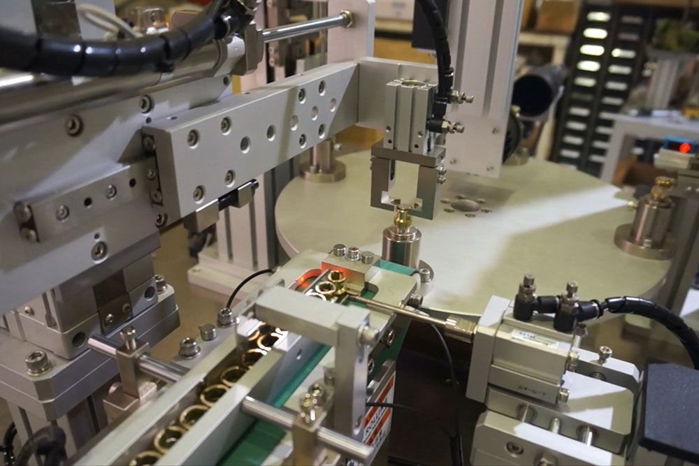 產品類別 Menu 自動化產品組裝機 全自動BNC接頭組裝機 全自動反光片自動組裝機 半自動 SMA自動組裝機 全自動螺絲套O-RING及護套組裝機 半自動伺服下壓台 半自動 螺絲、華司鎖付組裝機 全自動氣壓棒活塞組裝機 全自動 BNC 外殼組裝鉚合機 視覺檢測 電子接頭視覺篩選機 PIN針尺寸、偏擺視覺篩選 機車鏈條O-RING視覺篩選 機械手臂應用 Robot包裝封袋設備 系統配電 油壓單源控制系統 機構、系統研發 拋物線凸輪移載機構 輕量型移載機構 直線旋轉機構 電子接頭視覺篩選機 規格:合計4站別,分別為入料、內孔深度檢測、外觀尺寸量測、OK/NG分類、1支CCD 200萬像數、遠心鏡頭。檢測物:BNC外殼、電子接頭零件、半成品組裝件。檢測條件:外觀尺寸、缺件檢測。說明:大展 經由團隊流程分析規劃,使用伺服機構入料,滿足多規格產品。內孔深度檢測採用KEYENCE LVDT,精度0.01mm。視覺檢測採用200萬像數,以及遠心鏡頭、遠心光,達到檢測精度正負0.02mm之規格。 電子接頭視覺篩選機 產品圖 電子接頭視覺篩選機 影片介紹